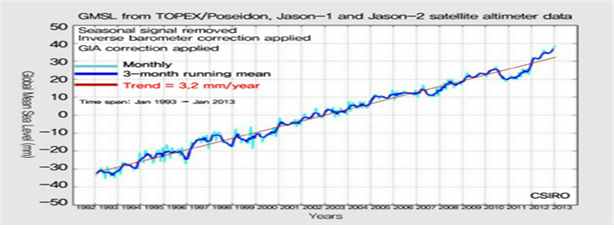 In the 20th century, the Global Mean Sea Level (GMSL) rose by 10 to 20 centimeters according to satellite measurement data. However, the annual rate of rise over the past 20 years has been 3.2 millimeters a year, approximately twice the average speed of the preceding 80 years.