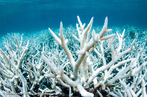 Coral reefs dying due to ocean warming